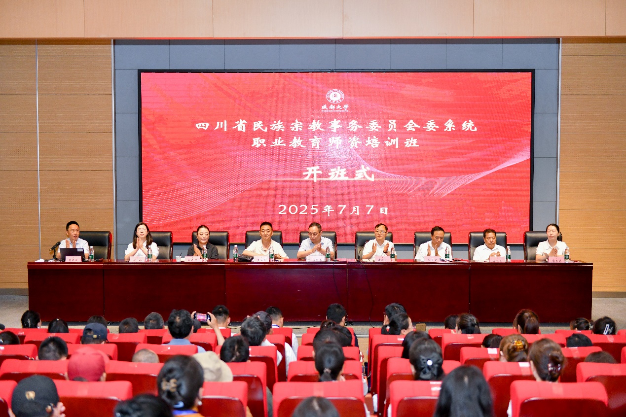 随后,帅祥军巡视员作动员讲话。他强调,本次培训旨在为委属院校的老师们提供一个学习交流、充电赋能、提升自我的平台,共同探讨新时代民族职业教育发展的新理念、新路径,依托成都大学优质资源,赋能委属职业院校师资队伍建设。他对参训学员提出三点要求:一是增强政治意识,牢牢把握铸牢中华民族共同体意识这条主线;二是坚持靶向赋能,聚焦主责主业,提升传道授业解惑育人能力;三是严守学习纪律,确保培训安全有序有效开展。最后,他对成都大学支持少数民族地区职业教育技能提升及组织此次培训的工作人员表示感谢,并预祝培训圆满成功。